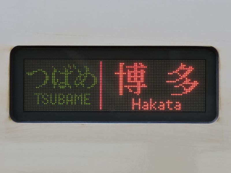 新幹線800系電車(久留米駅) 「つばめ」の名称の起源は戦前の1930年まで遡り、以後国鉄を代表する特急列車として用いられてきたが、山陽新幹線の開業に伴い1975年に一旦廃止された後、JR九州の特急として1992年に復活した。 2004年に新八代~鹿児島中央間が部分開業して以降、「つばめ」は九州新幹線の各駅停車タイプの名称となり、近年では朝時間帯にわずかながら山陽新幹線の小倉まで運行される列車も設定されている。 車両は運行開始時から800系が使用されており、2011年の全線開業以降はN700系7000/8000番台も加わった。 運行区間 小倉・博多~熊本・鹿児島中央など(区間運転列車多数あり) 経由線区 山陽新幹線・九州新幹線 停車駅 各駅停車 新幹線N700系7000/8000番台電車(鹿児島中央駅)