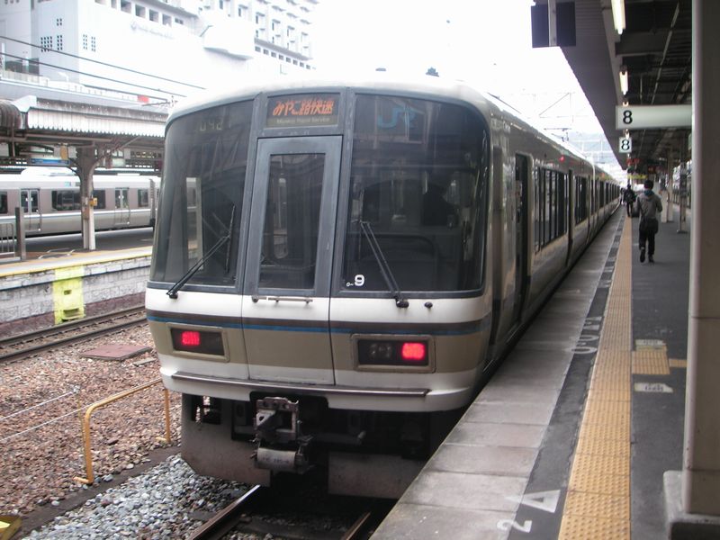 。東海道本線などを走行する車両と違い最高速度が120km/hに抑えられているため、貫通扉と乗務員扉に判別用のオレンジ帯があるのが特徴である。221系は2012年3月の改正で運行を終了した。