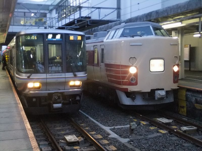 歓喜の準優勝(?)の直後に一枚。東の183系と西の223系。