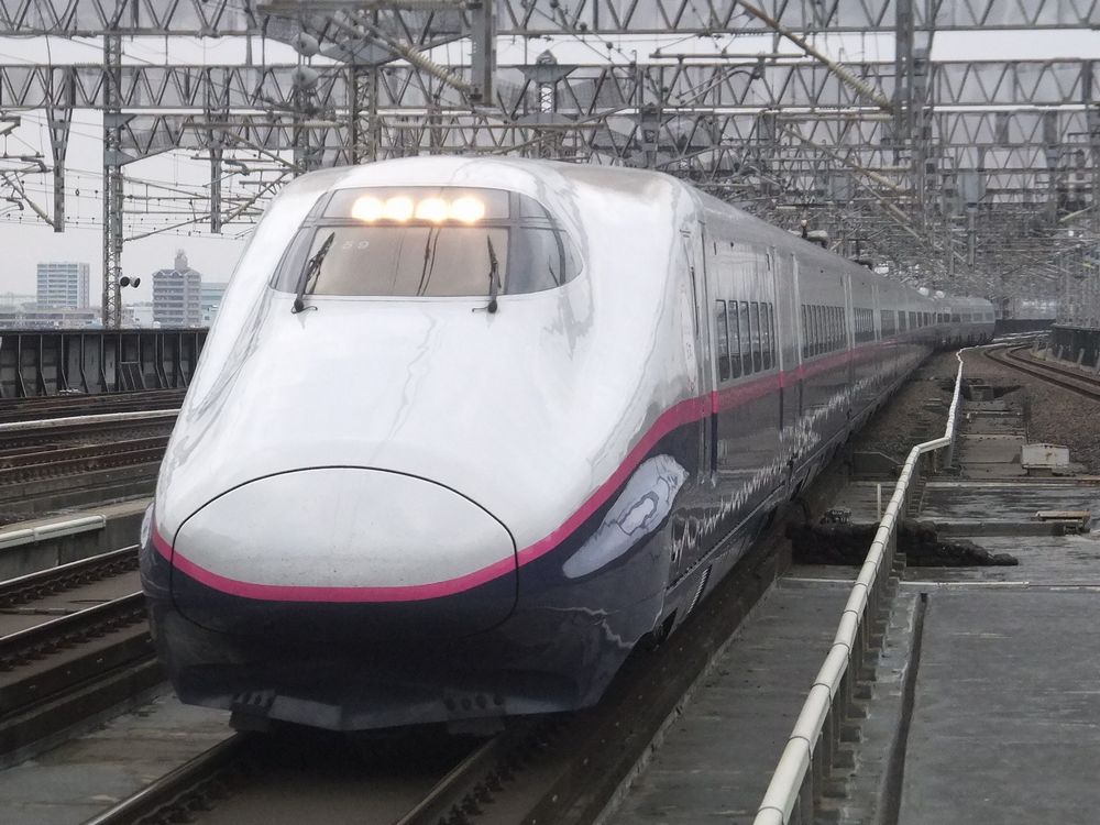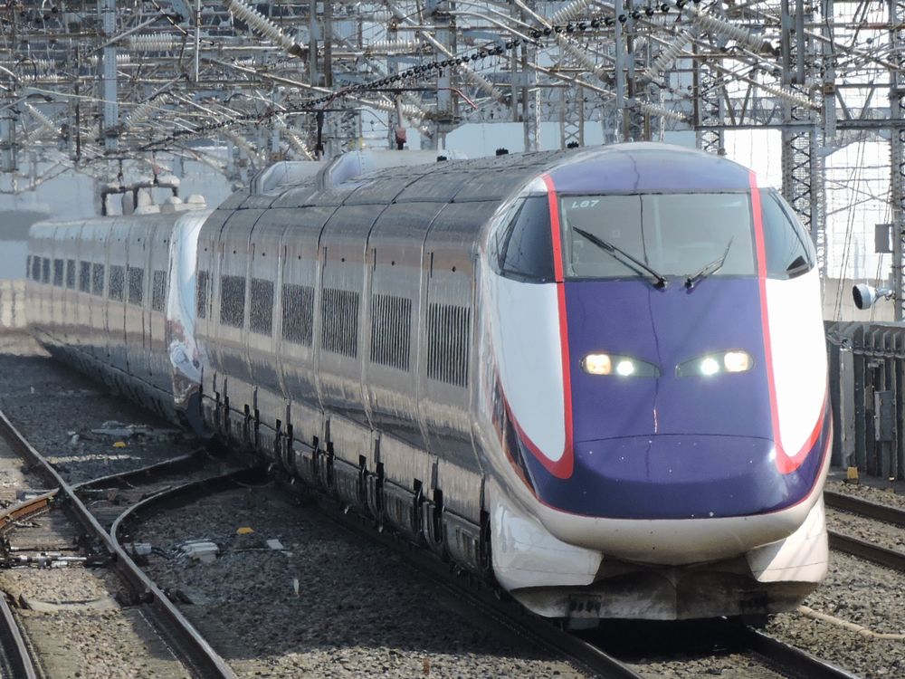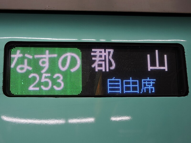 新幹線E5系電車(大宮駅) 新幹線E6系電車(大宮駅) 「なすの」は東北新幹線の各駅停車タイプの列車で、朝夕の通勤・通学ラッシュ帯を中心に運行されている。運行区間は郡山以南に限られており、「やまびこ」の通過駅を補完する役割も担っている。 新幹線E3系0番台(大宮駅) 車両はH5系を除く東北新幹線の大宮以北を走る全ての列車で、「つばさ」用のE3系1000・2000番台、「こまち」用のE6系も間合い運用で入る。2020年10月末までは元「こまち」用のE3系0番台も運用に入っていた。 運行区間 東京~小山・那須塩原・郡山 経由線区 東北新幹線 停車駅 各駅停車 新幹線E7/W7系電車(大宮駅)