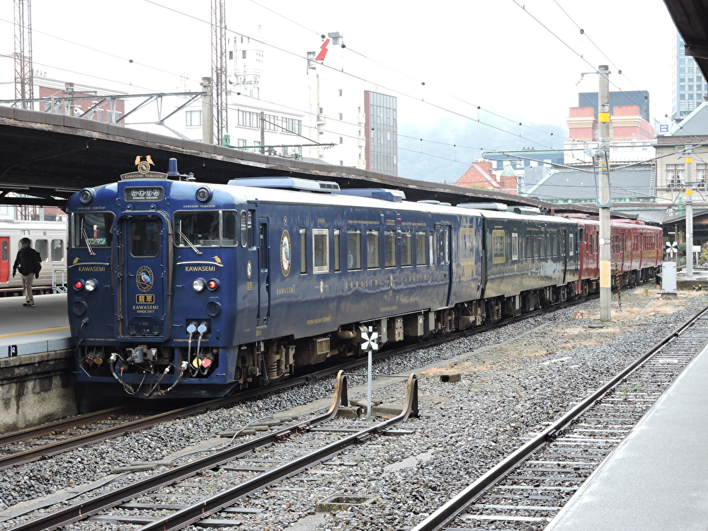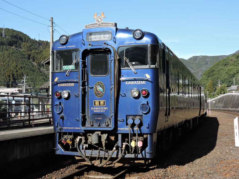 「かわせみ やませみ」はJR九州のD&S列車の一つとして2017年にデビューした観光列車で、球磨川に沿って肥薩線を走り、熊本県の小京都・人吉へ向かう。 専用車両のキハ47形は2両それぞれのデザインが異なっており、1号車は青を基調とした「かわせみ」、2号車は緑を基調とした「やませみ」の愛称がつけられている。 肥薩線では元々特急「くまがわ」や「九州横断特急」が運行されていたが2016年に廃止・運行区間縮小によって特急列車の運行がなくなっていた。「かわせみ やませみ」の登場と、同時に行われた「いさぶろう・しんぺい」の特急格上げによって肥薩線の特急が1年ぶりに復活した形となった。 「いさぶろう・しんぺい」との併結運行時の様子(門司港駅) 2020年に発生した熊本豪雨の影響で肥薩線は全線運休となった。現在は同じく肥薩線を運行していた特急「いさぶろう・しんぺい」と併結し、土休日を中心に博多~門司港間で運行されている。 【肥薩線運行時のデータ】 運行区間 熊本~人吉 経由線区 鹿児島本線・肥薩線 停車駅 熊本-新八代-八代-坂本-一勝地-渡-人吉 キハ147形気動車・キハ47形気動車(隼人駅)