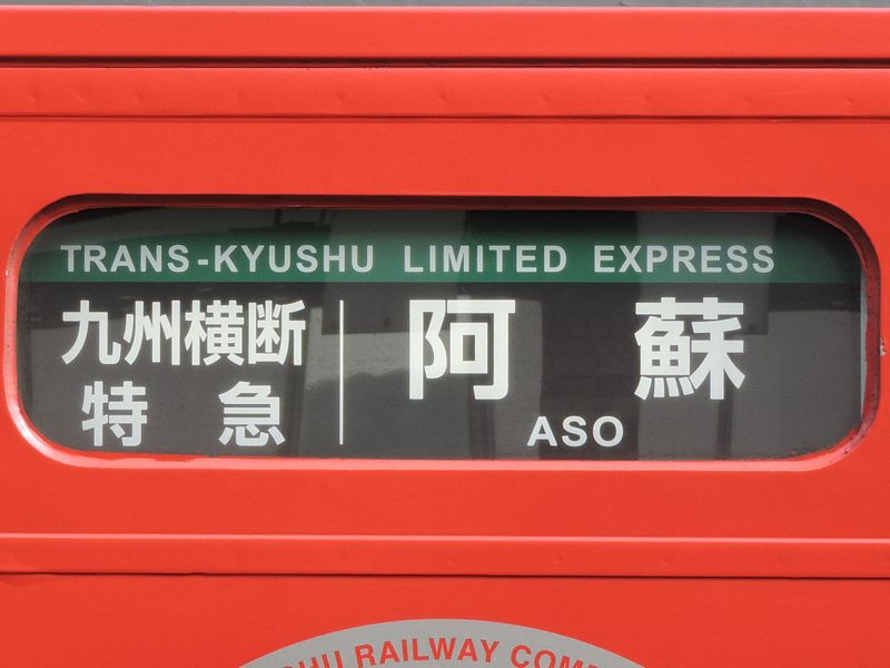 「九州横断特急」はその名の通り九州を横断する列車で、熊本~阿蘇~大分の豊肥本線を走破して別府まで運行されている。2016年に発生した熊本地震の際には復旧までの4年間、阿蘇~別府で運行されていた。過去には熊本から先の肥薩線・人吉まで運行される列車もあった。 車両はキハ185系で、特急「あそ」「ゆふ」と同一塗装となっている。土休日や行楽シーズンには1往復が当列車に代わって特急「あそぼーい!」として運行される。 運行区間 熊本~別府 経由線区 豊肥本線・日豊本線 停車駅 熊本-新水前寺-水前寺-武蔵塚-光の森-肥後大津-立野-赤水-阿蘇-宮地-豊後荻-豊後竹田-緒方-三重町-中判田-大分-別府 キハ47形気動車(坂本駅・八代駅)