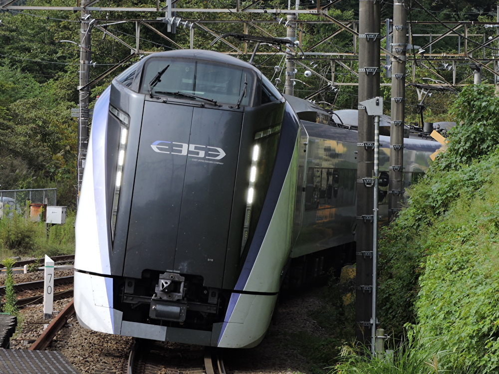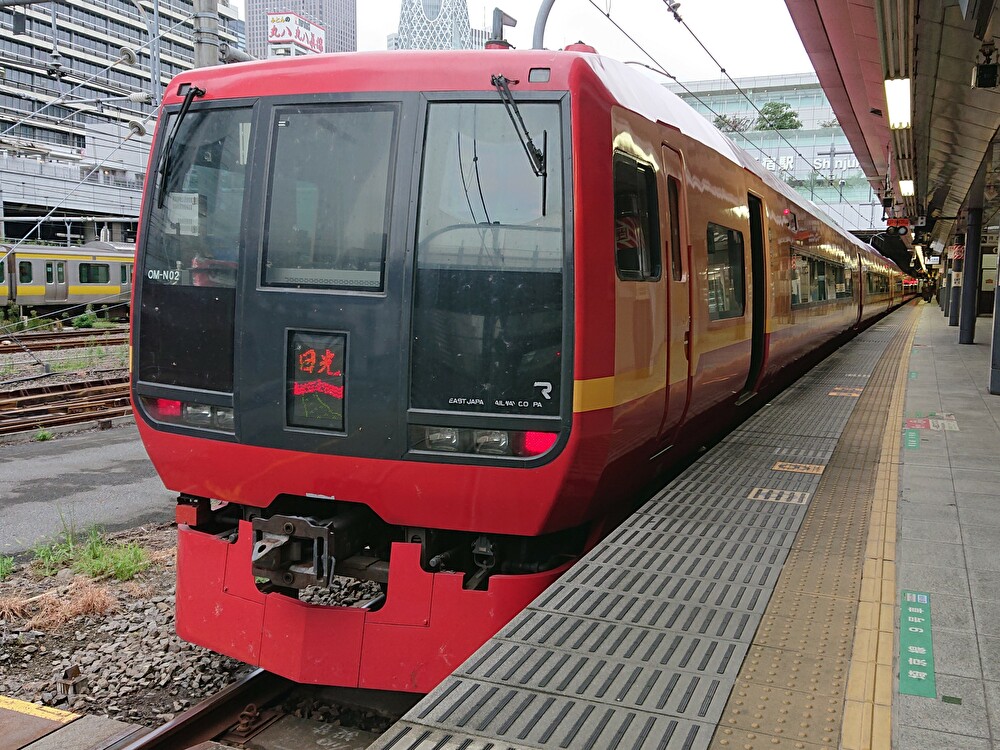 「日光」はJR東日本・東武鉄道直通特急として2006年に運行を開始。現在の車両は2代目で、元々「成田エクスプレス」として運行されていた253系を改造したものである。 両者の相互乗り入れで運行されている特急「きぬがわ」「スペーシアきぬがわ」と違いJR車両の片乗り入れで運行されているが、臨時列車では「スペーシア日光」として東武の車両で運行されることもある。また、八王子~大宮間を「むさしの」号と同じルートで運行する「はちおうじ日光」も設定されることがある。 JR・東武間の乗り入れは栗橋駅の連絡線を介しており、デッドセクション通過と運転停車による乗務員交代も行われる。 運行区間 新宿~東武日光 経由線区 湘南新宿ライン(JR山手線・東北貨物線)・東北本線・東武日光線 停車駅 新宿-池袋(JR)-浦和-大宮(JR)-栃木(東武)-新鹿沼-下今市-東武日光 E257系500番台電車(保田駅)