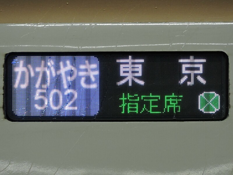 「かがやき」は北陸新幹線の再速達種別として金沢延伸開業時にデビューした。列車名称は「はくたか」「つるぎ」と同様に元々北陸を走っていた特急列車の名称として使われていたもので、「かがやき」は金沢~長岡間を走る上越新幹線連絡特急として運行されていた歴史がある。 車両はJR東日本のE7系とJR西日本のW7系で、JR西日本では初めてのグランクラス設定列車となっている。最速達種別だけあって停車駅もかなり限定されており、特に大宮~長野間は全列車がノンストップでの運行となる。 運行区間 東京~金沢・敦賀 経由線区 東北新幹線・上越新幹線・北陸新幹線 停車駅 東京-(上野)-大宮-長野-富山-(新高岡)-金沢-(小松)-(加賀温泉)-(芦原温泉)-福井-(越前たけふ)-敦賀 ※カッコ内は一部列車が停車 新幹線E2系電車(大宮駅)