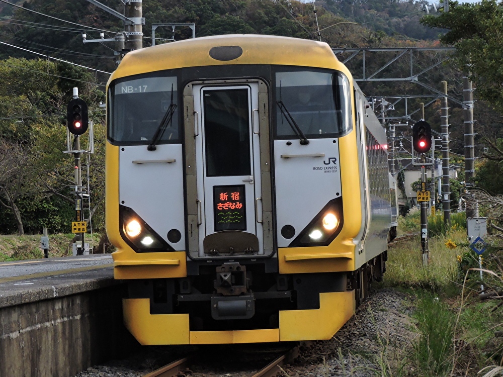 「新宿さざなみ」は主に土休日に運行されている内房線の特急で、臨時列車扱いながら多くの運行日が設定されている。 定期の特急「さざなみ」は東京発着・京葉線経由での運行となっているが、「新宿さざなみ」はその名の通り新宿発着である。ルートも中央本線・総武本線経由となっており、かつては緩行線のみ運行される秋葉原にも停車していた。また、運行区間も定期列車の君津までに対し館山まで設定されている。 車両はE257系500番台で、特定日にはグリーン車が連結された編成で運行することもある。 運行区間 新宿~館山 経由線区 中央本線・総武本線・外房線・内房線 停車駅 新宿-錦糸町-船橋-千葉-蘇我-五井-木更津-君津-浜金谷-保田-岩井-富浦-館山 E231系0番台・900番台電車(大宮駅)